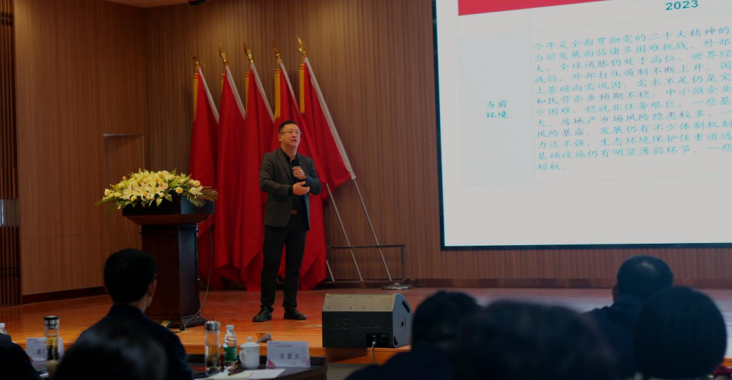 論壇邀請浙江大學毛文佳教授作主旨演講,毛文佳教授通過對兩會政府工作報告及相關經濟數據的分析,解讀當前國內外經濟形勢,闡述了經濟高質量發展的主要表現和企業發展之根、之魂,為各位企業家提供從宏觀經濟的角度探尋企業轉型發展的思路。