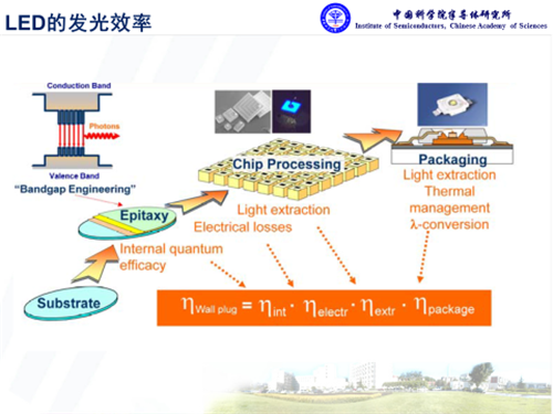 氮化鎵是直接帶隙的半導(dǎo)體材料,在光電應(yīng)用方面具有獨(dú)特優(yōu)勢?;诘壍腍B-LED對于通用照明來說,其核心問題是發(fā)光效率。其中外量子效率主要取決于三個層面的因素,內(nèi)量子效率、光提取效率,還有封裝方面的熒光轉(zhuǎn)化等效率,而且每個環(huán)節(jié)都息息相關(guān)。