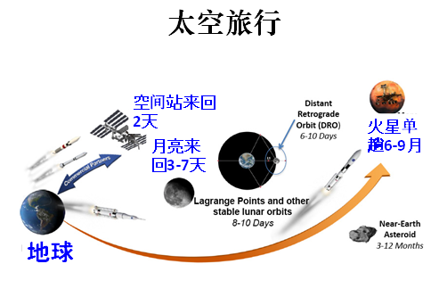 人類的太空旅行,不久就會實(shí)現(xiàn)。從下圖可以看到去各個目的地的時間。