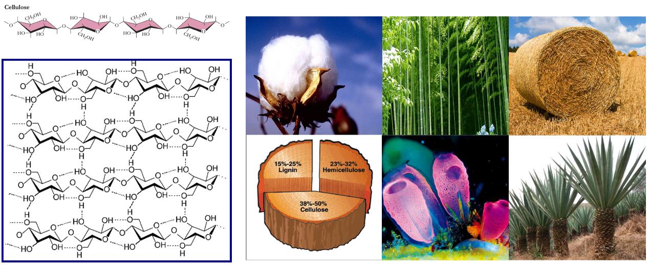 圖1 纖維素分子結構、聚集態結構與來源