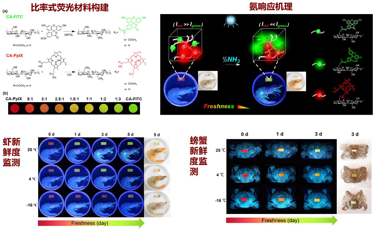 圖6 纖維素基胺響應雙發射固態熒光標簽:海鮮新鮮度監測