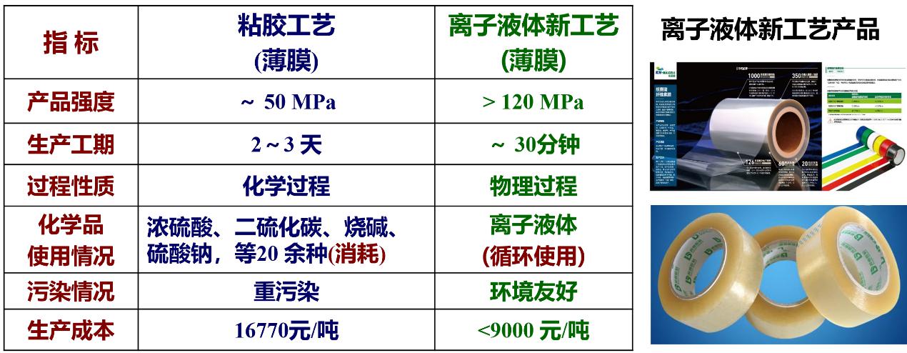 圖8 纖維素膜的傳統粘膠工藝與離子液體新工藝指標對比